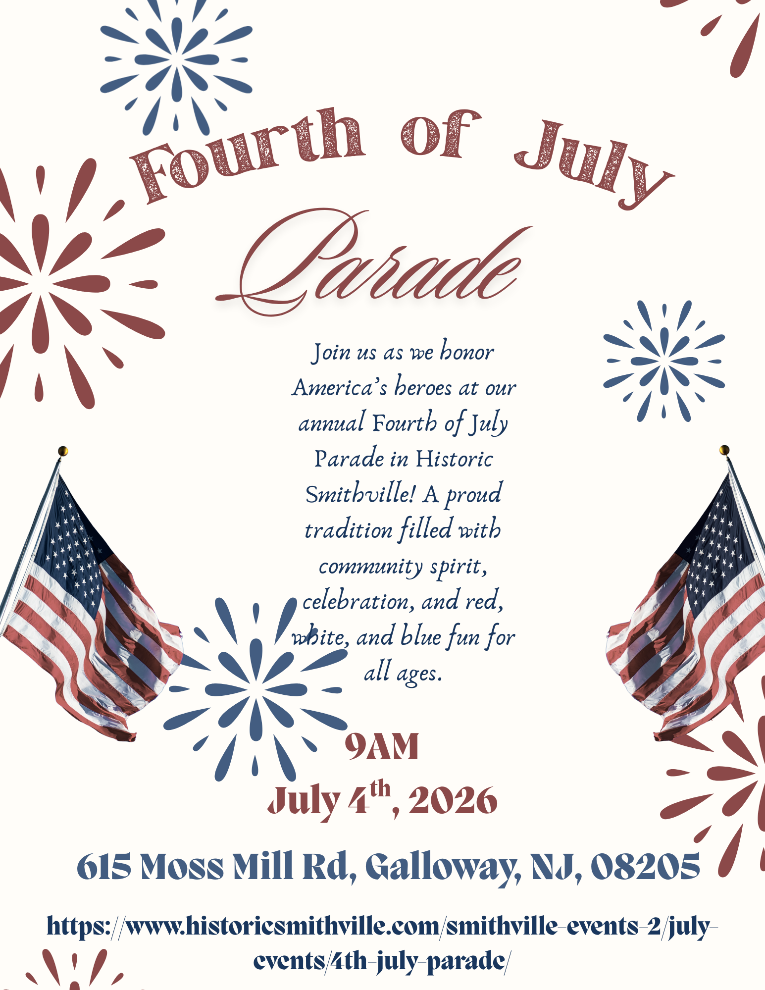 The parade will start at 9 a.m. with an expected 10,000 people to line the parade route. If you are interested in participating in the Fourth of July Parade you must pre-register, more information is given in the link below. Historic Smithville offers 60 Shoppes, 7 eateries, carousel ride, train ride, paddle boats, on-site Come out and celebrate our Nations’ birth! Historic Smithville has the largest Fourth of July parade in all of lodging at the Colonial Inn and over 26 free weekend events!